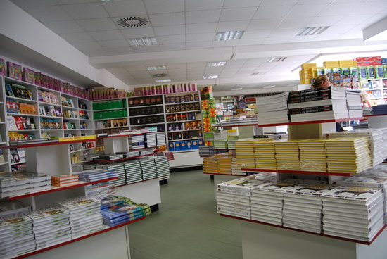 This shop has books shelved against the walls as elsewhere but really makes use of the pyramid, or more accurately, symmetrical piles and triangular islands of books that cover the floor space. One feels as if one is navigating an obstacle course or taking driver training.