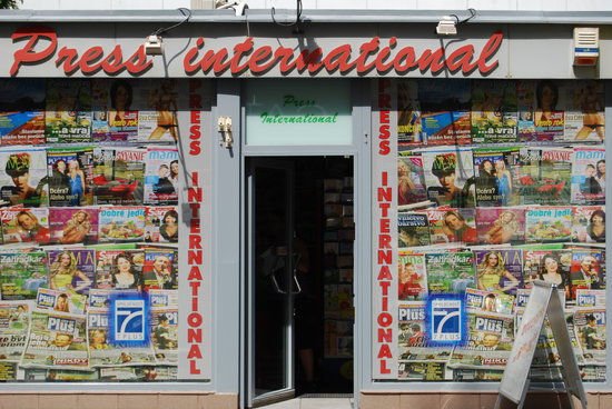 The most decorative store front in Bratislava, although not as up-to-date as one might expect at a periodical outlet.