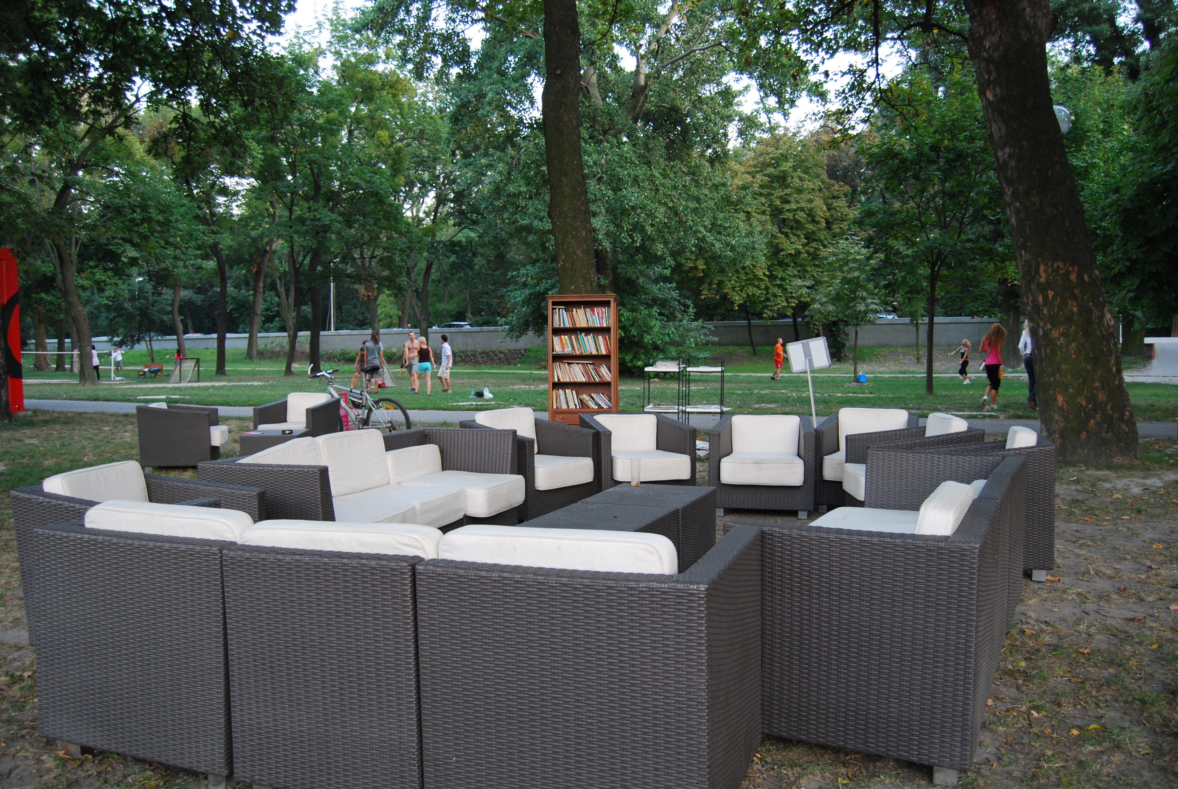 Within the mass of bikinis and beers there is also a rather empty but inviting gathering of white faux leather loungers.