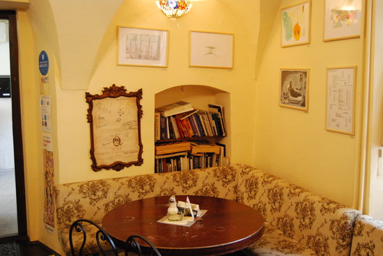 A unique café book shop on the edge of the old town in Bratislava offers popular previously-owned books in English, classic Slovak literature, periodicals, the internet, and more.