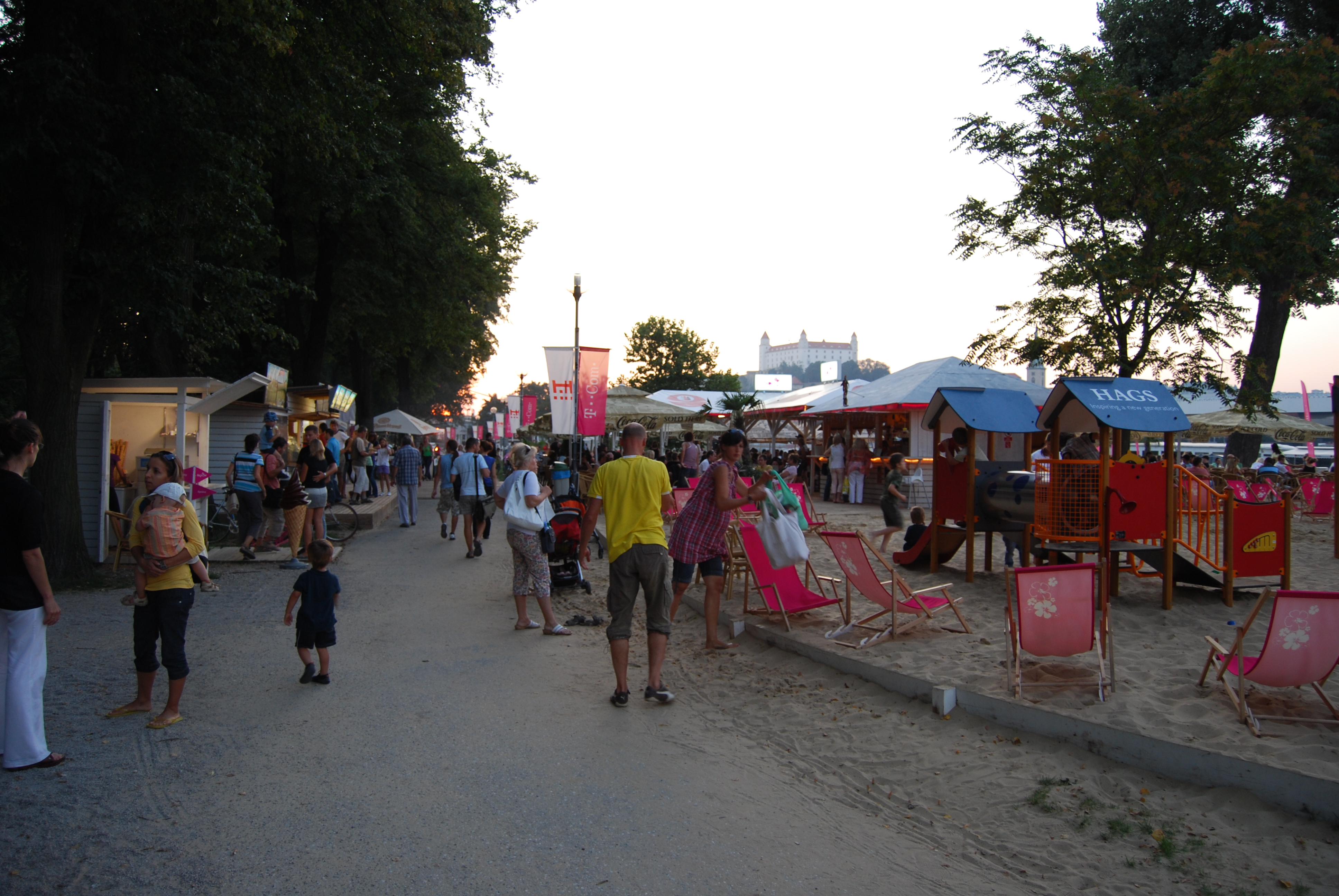 Next to the Danube on the Petrzalka side of the Danube is a sort of summer fair with open-air pubs, volleyball, games, etc.